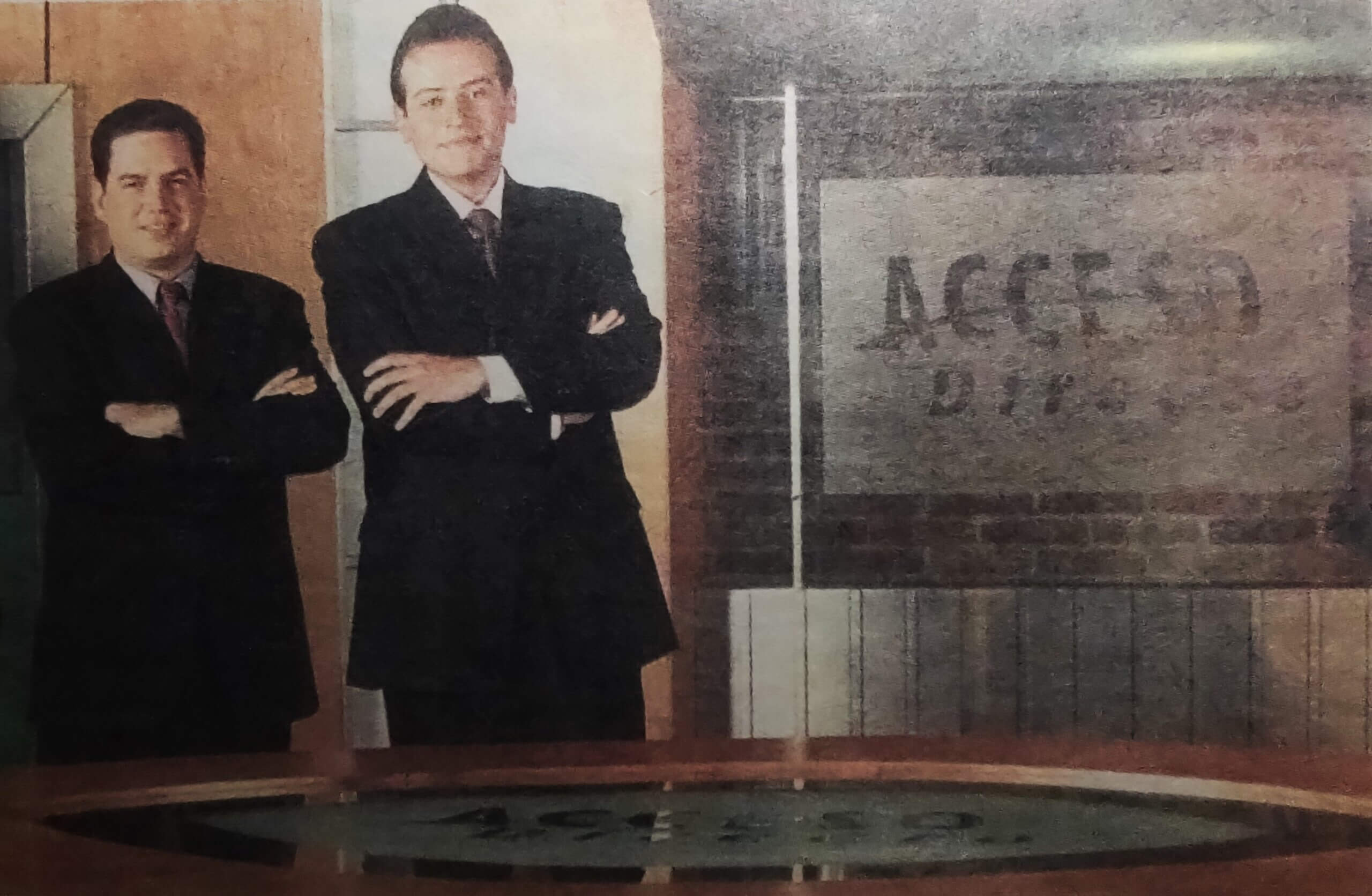 El Autor, en 2001, cuando dirigió y presentó el programa de televisión Acceso Directo. Aquí, en compañía de Jorge Serrano, Productor Ejecutivo e hijo del expresidente de Guatemala.