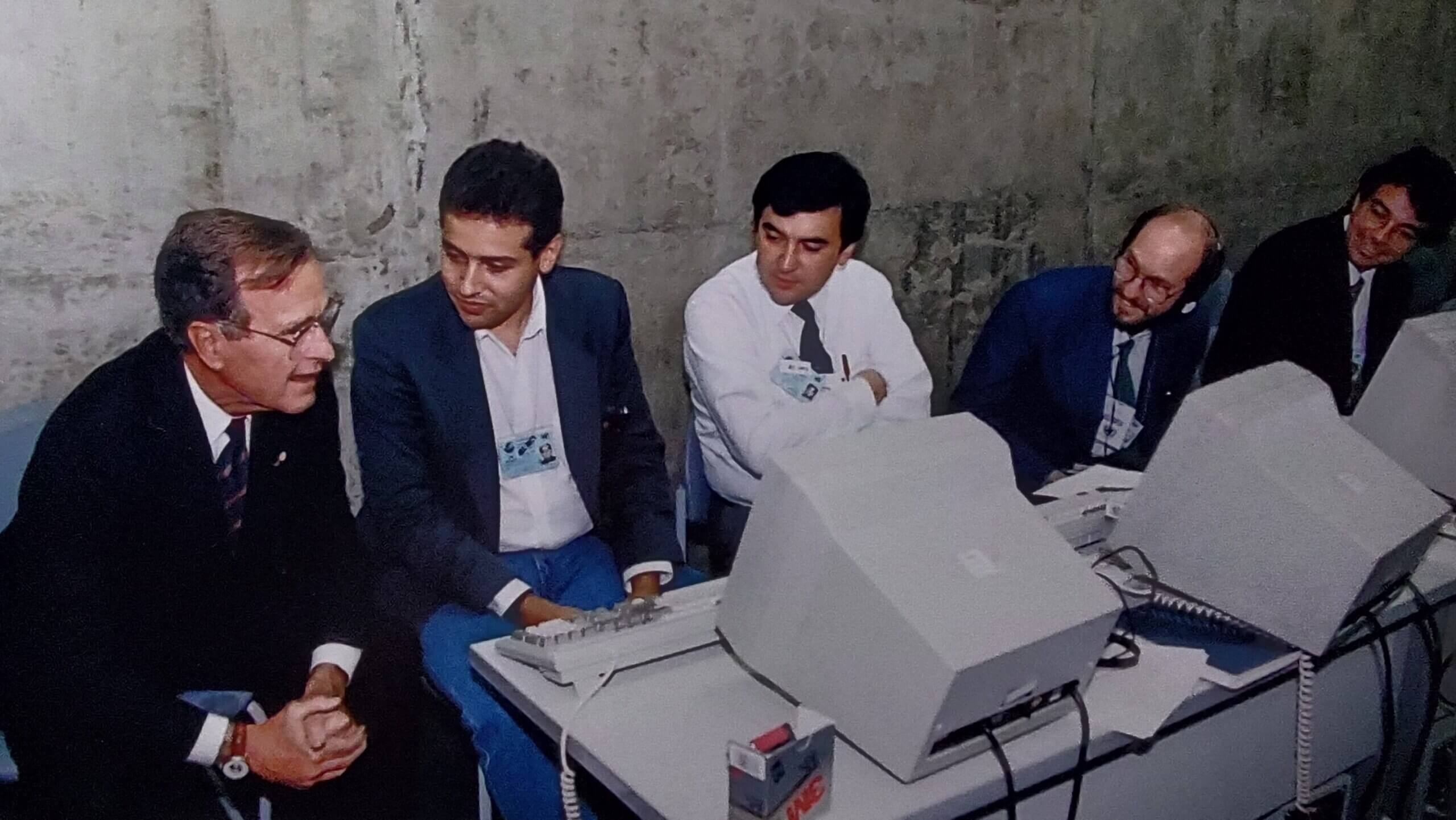 El Autor, cuando se desempeñó como Oficial de Información para la Conferencia de las Naciones Unidas sobre Medio Ambiente y Desarrollo, CNUMAD. Aquí, en compañía del presidente de los Estados Unidos, George H. W. Bush, durante el encuentro de presidentes en Rio de Janeiro, Brasil (1992).